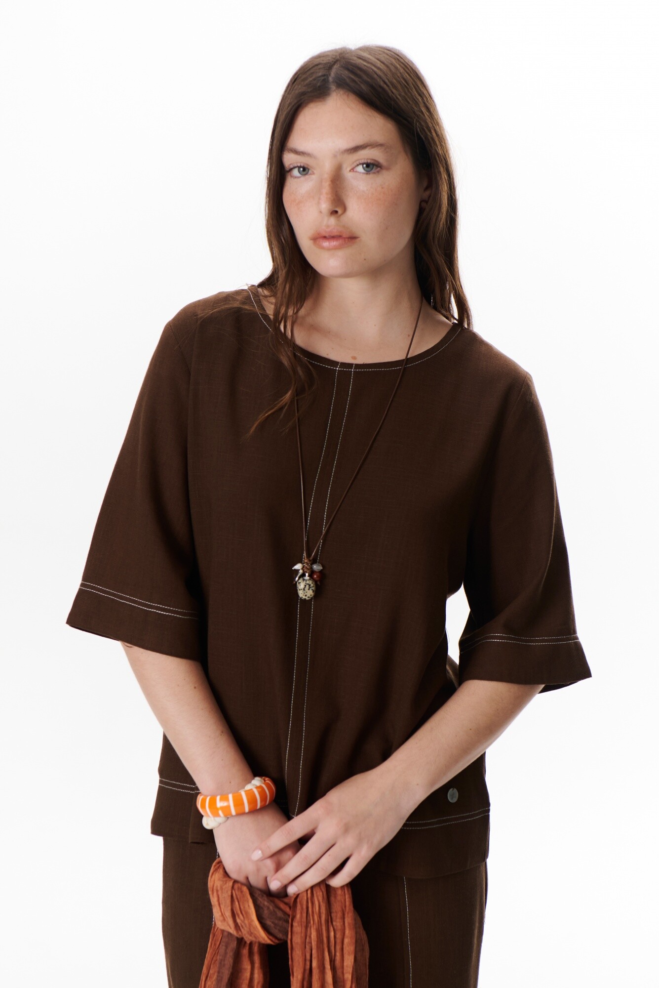 BLUSA LINO EVA - MARRON