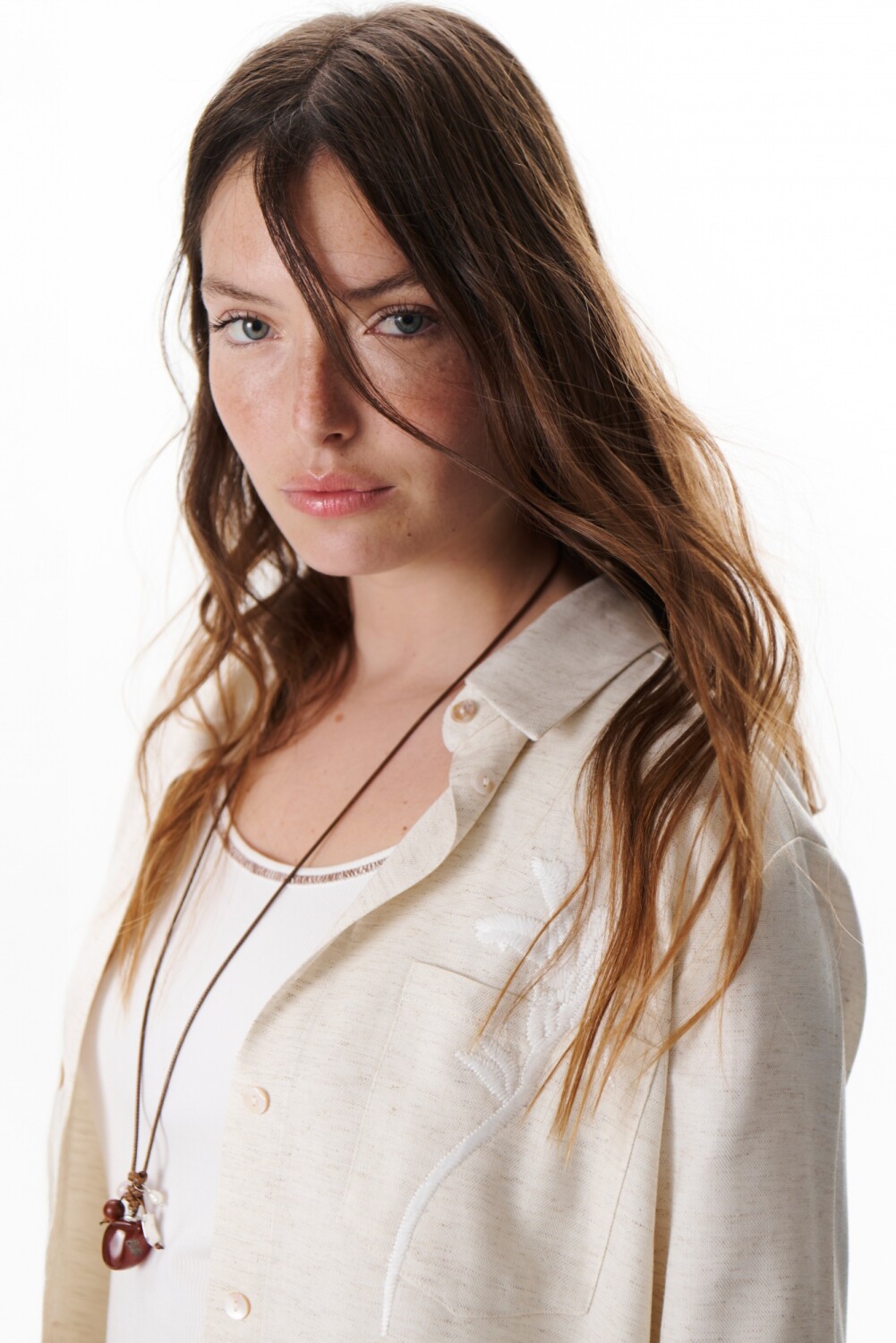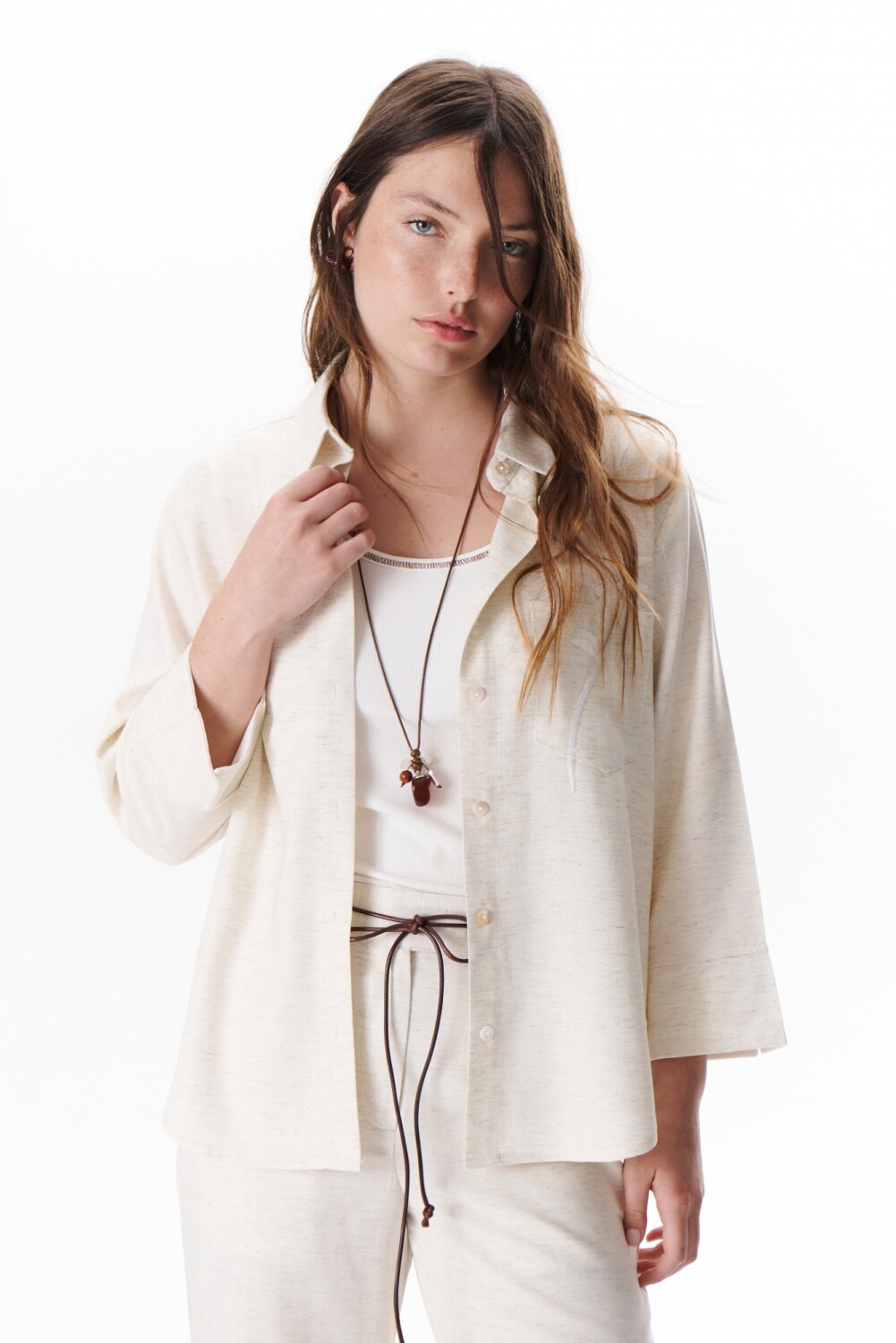 La Camisa Lirio es una pieza esencial que complementa cualquier outfit con su diseño versátil. Suave y ligera, podés usarla cerrada para un look más estructurado o abierta para un estilo más relajado. Crea el look perfecto con el Pantalón Lino Lirio.