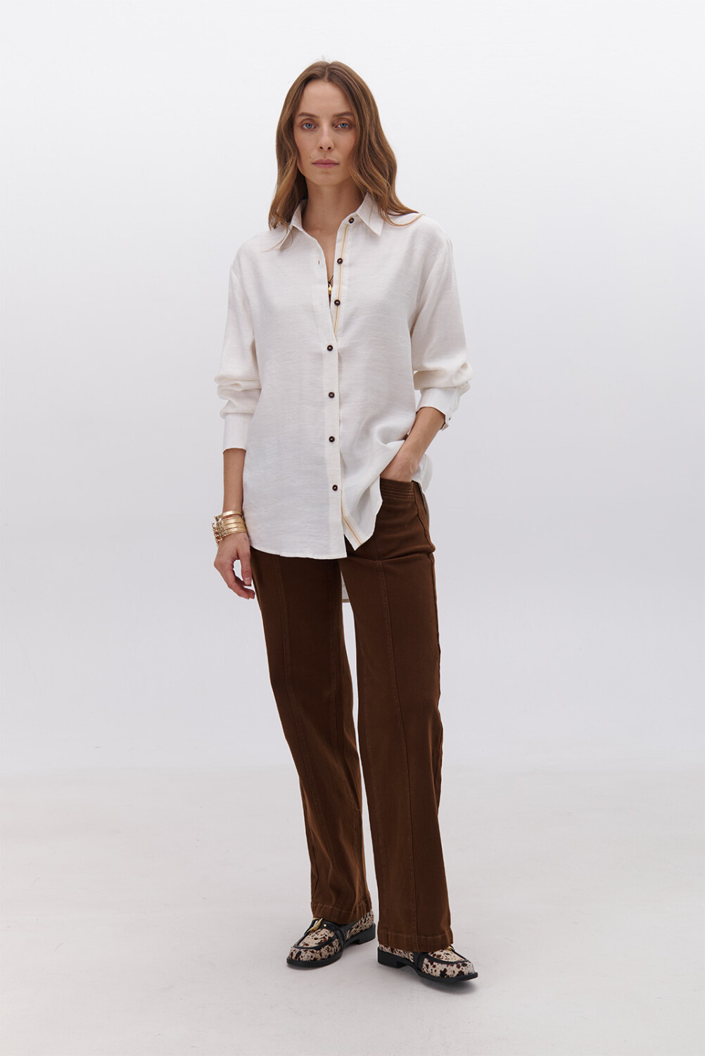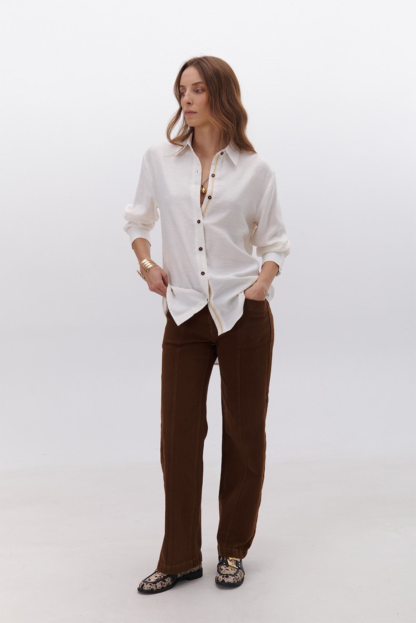 La Camisa Lisboa es perfecta para distintas ocasiones gracias a su estilo atemporal y su delicada textura. La podes usar cerrada para un look más estructurado o abierta para un estilo más relajado. Con esta camisa ligera y fresca podrás crear conjuntos casuales y frescos.