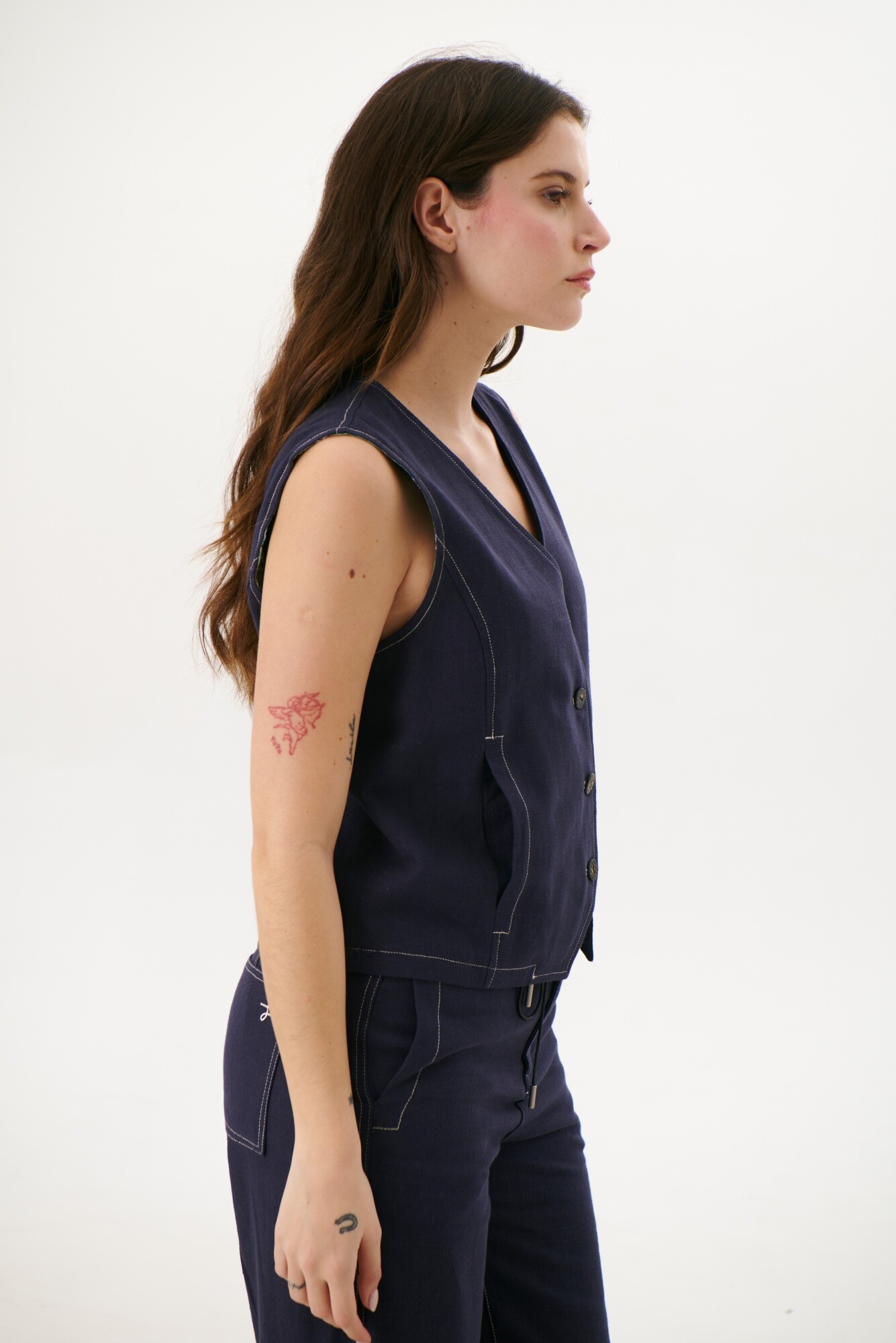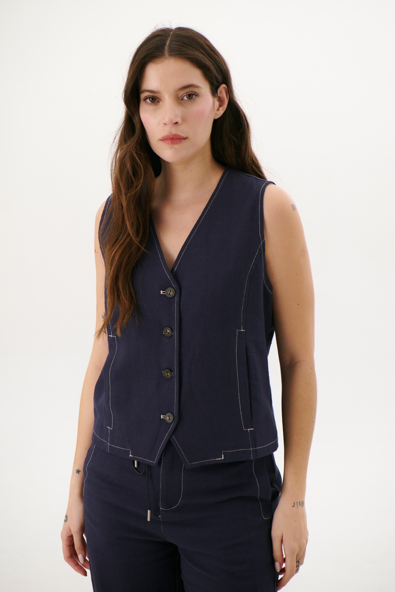 Un clásico atemporal, el Chaleco Lino Art tiene un diseño versátil que lo hace ideal para una variedad de ocasiones, desde eventos formales hasta reuniones de negocios o incluso para añadir un toque de estilo a conjuntos más informales. Combinalo con el Pantalón Lino Art.