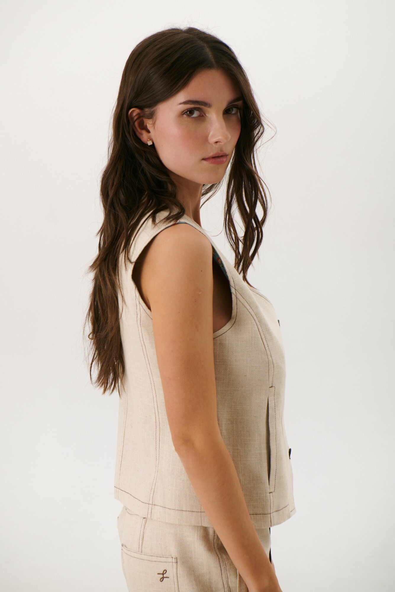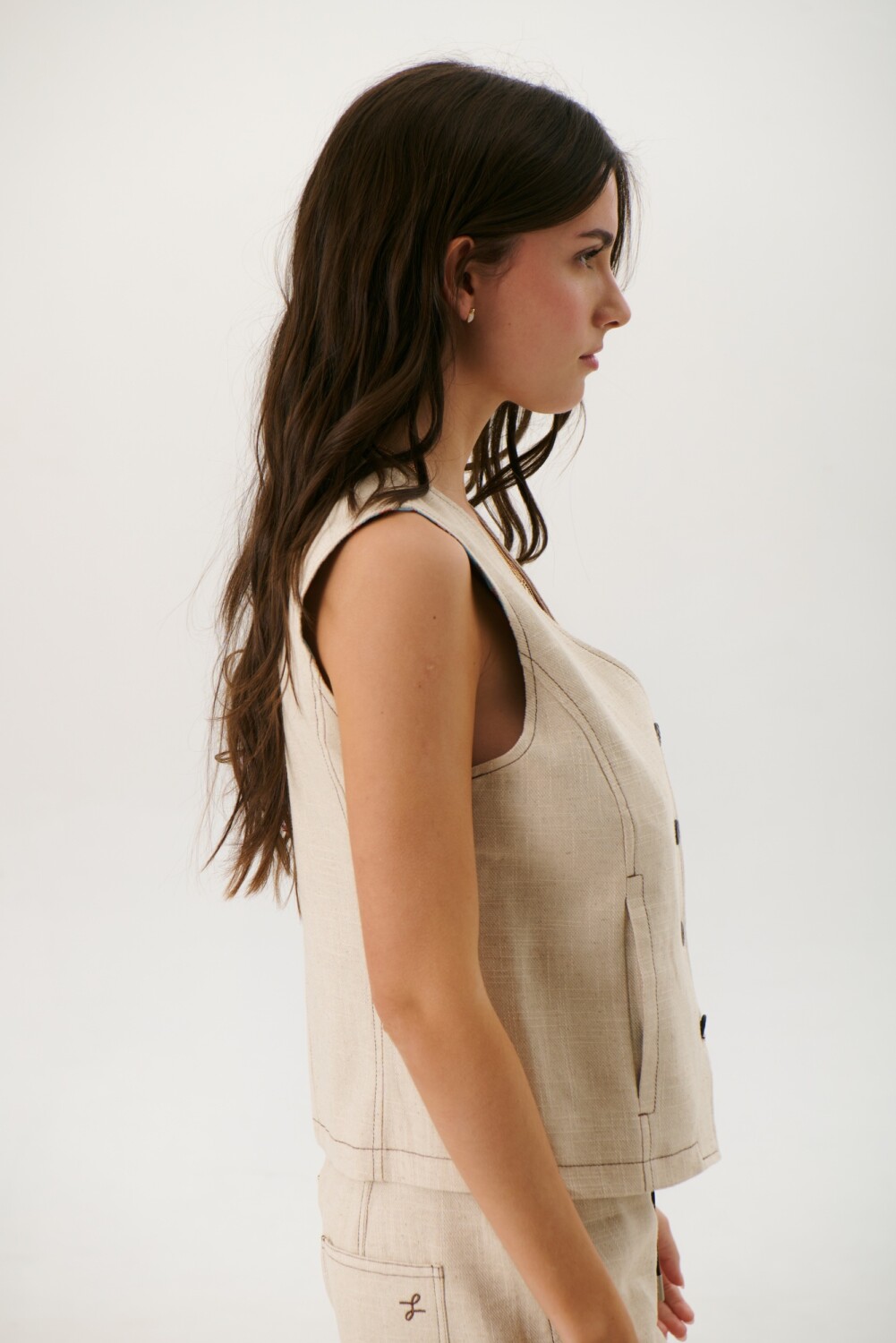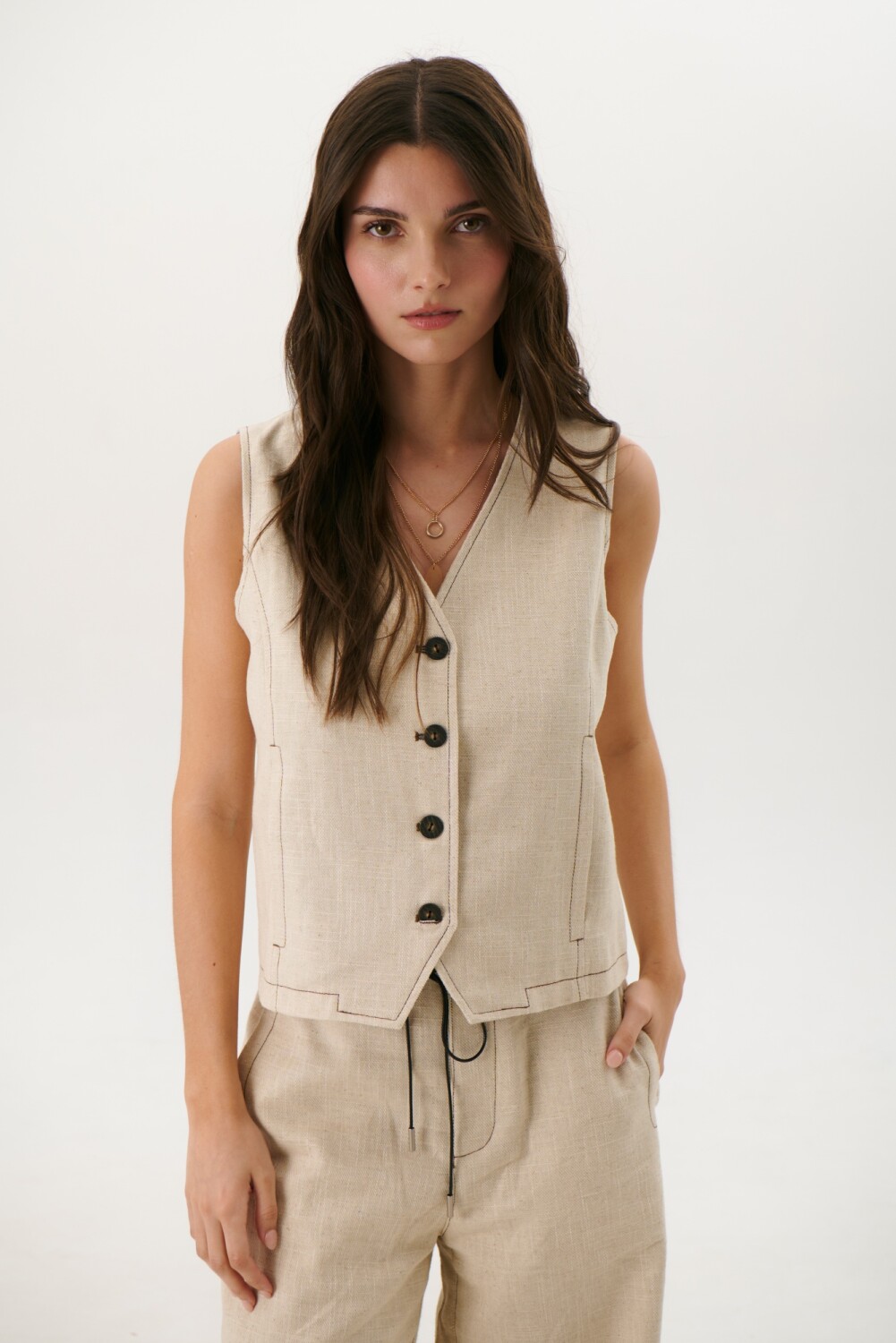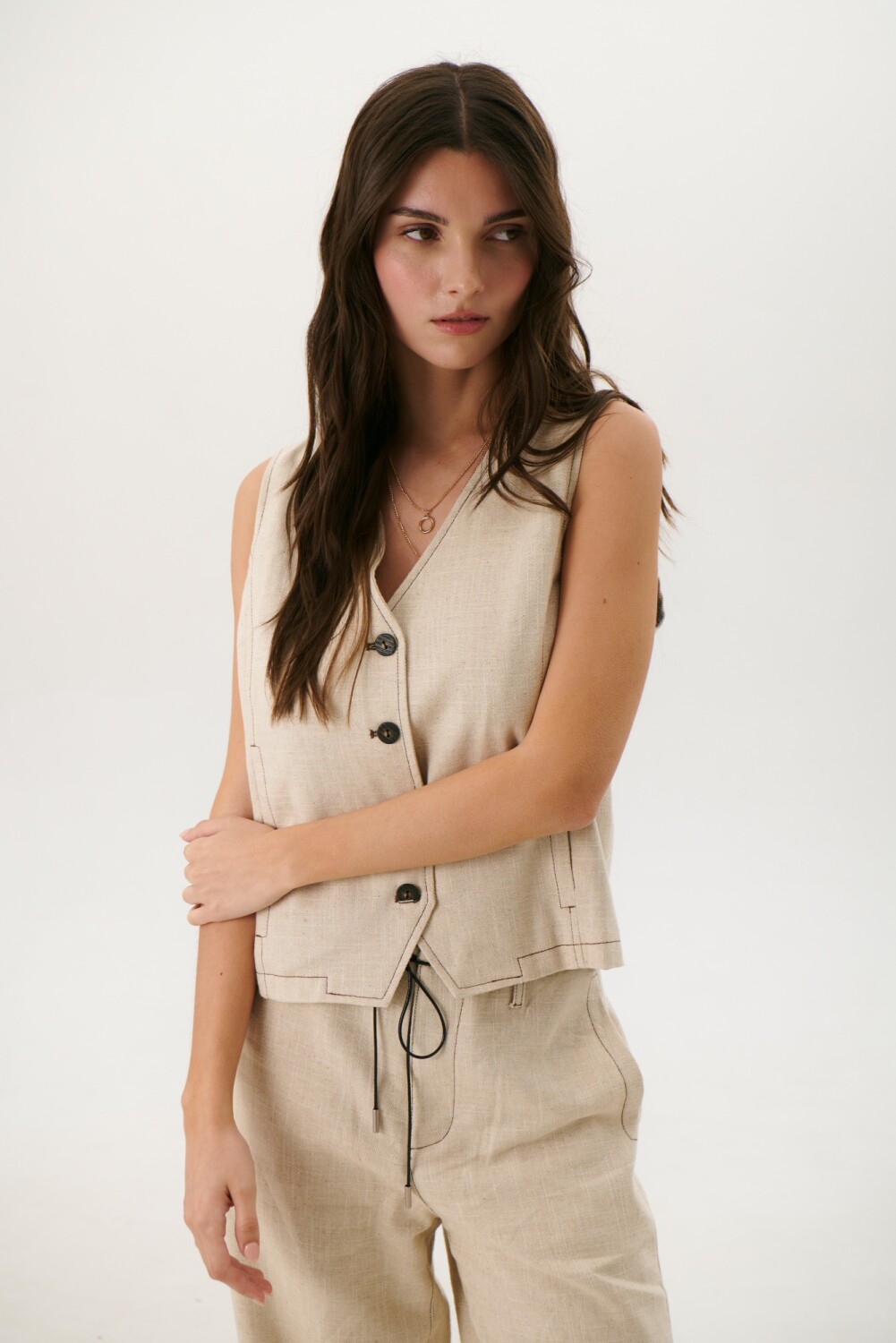 CHALECO LINO ART - BEIGE