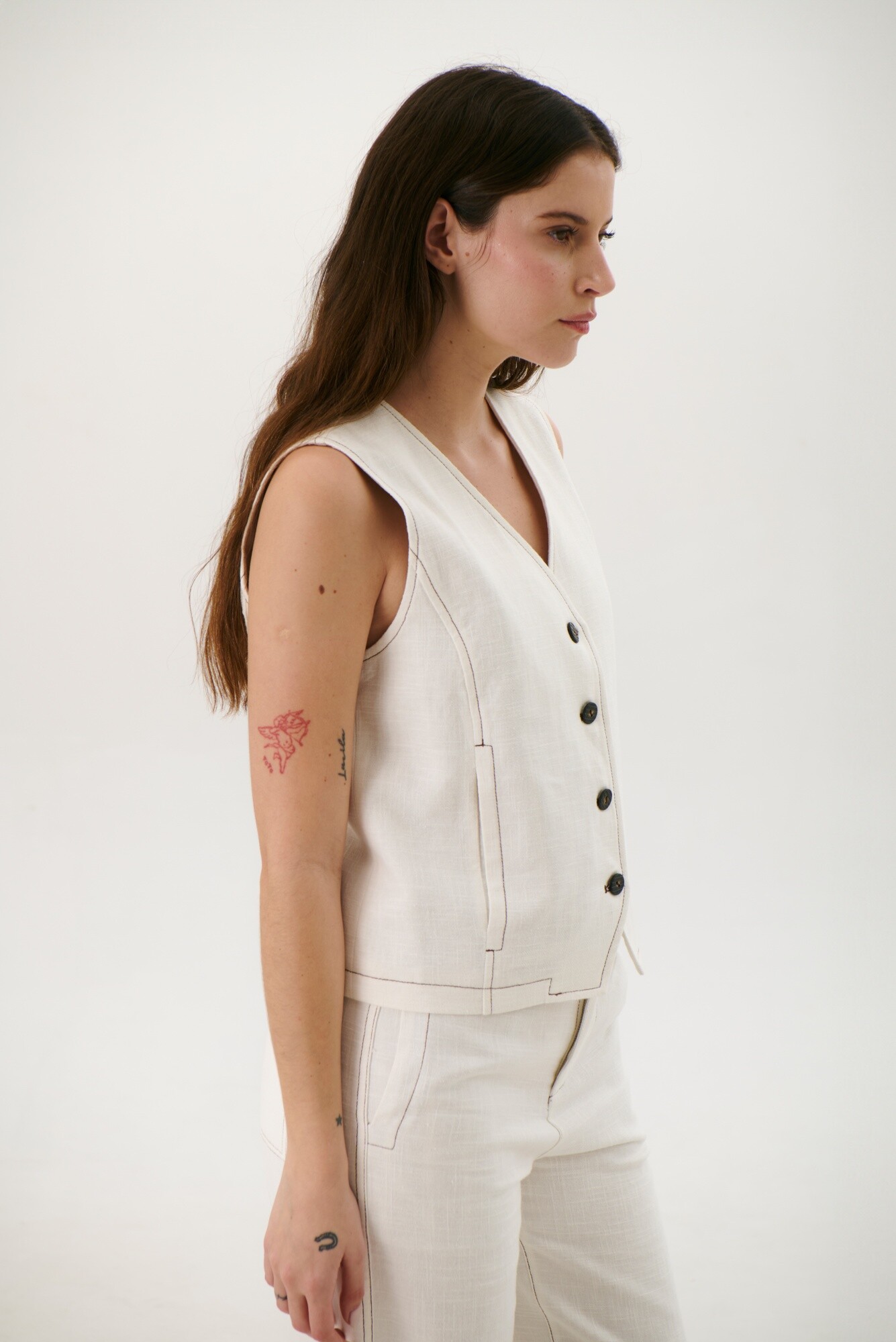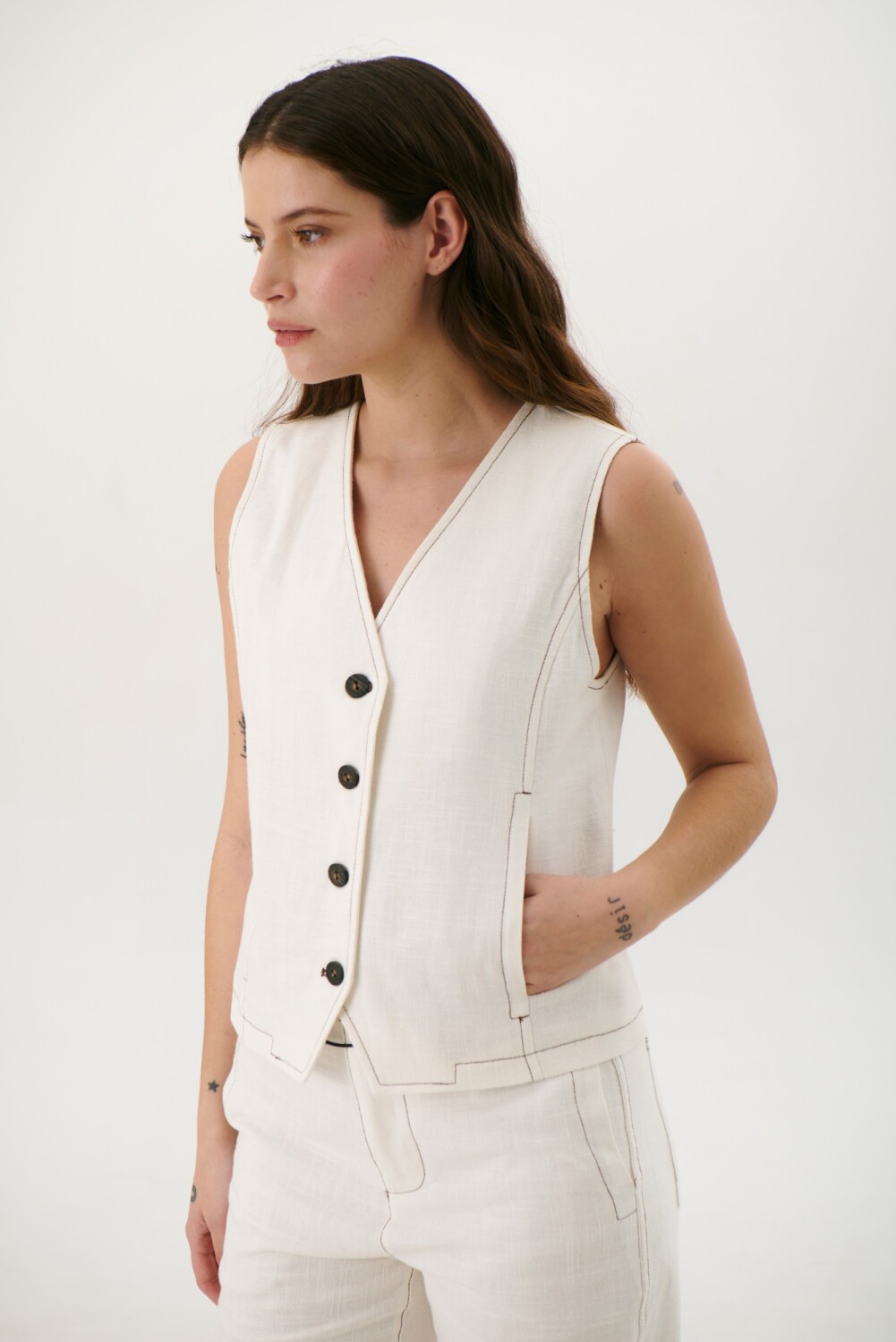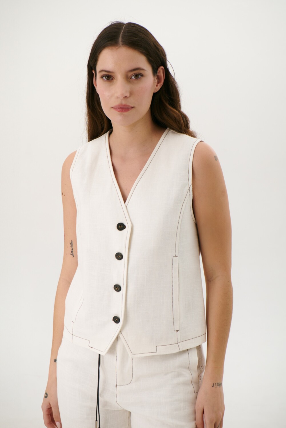 CHALECO LINO ART - BLANCO