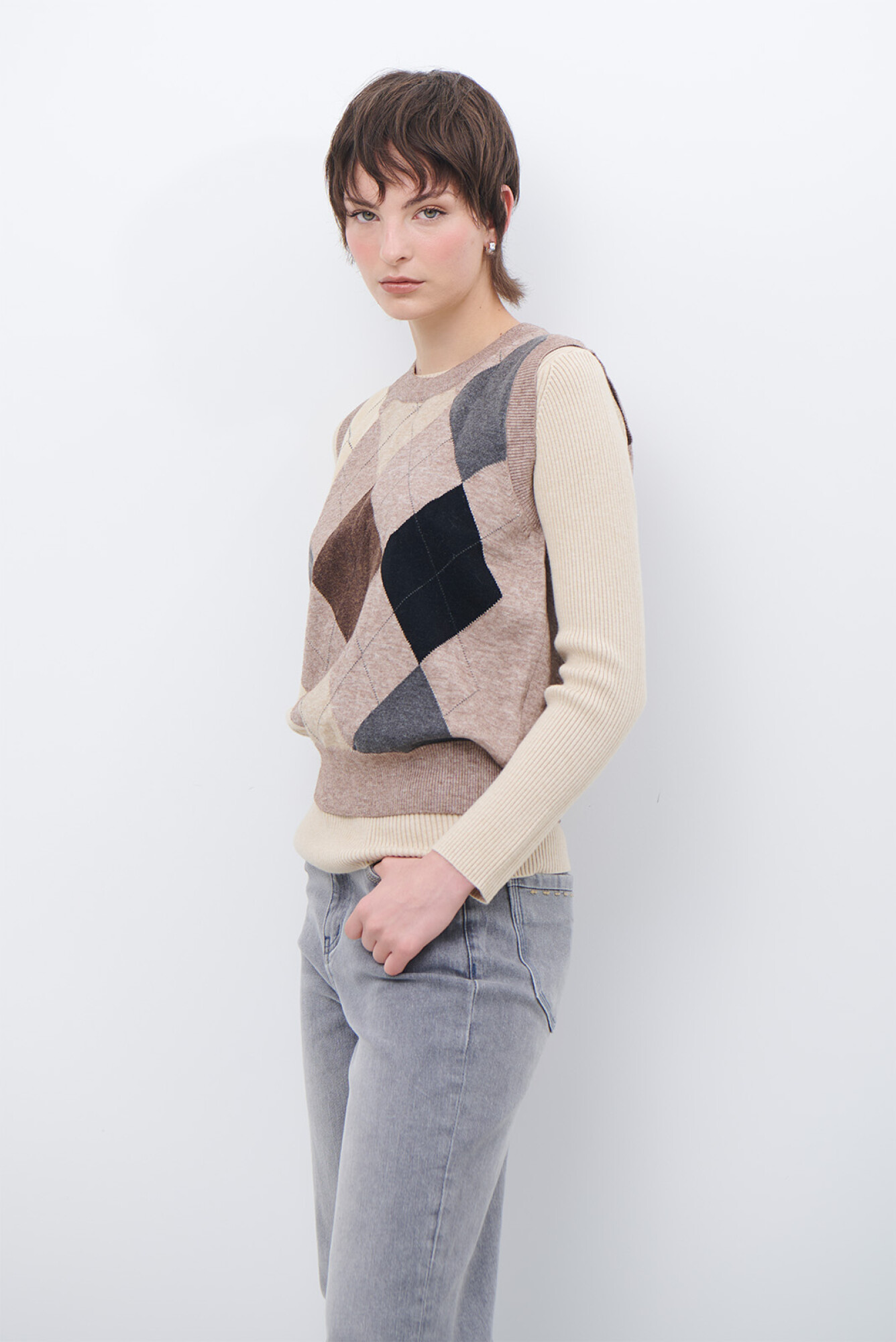 CHALECO ROMBOS - BEIGE