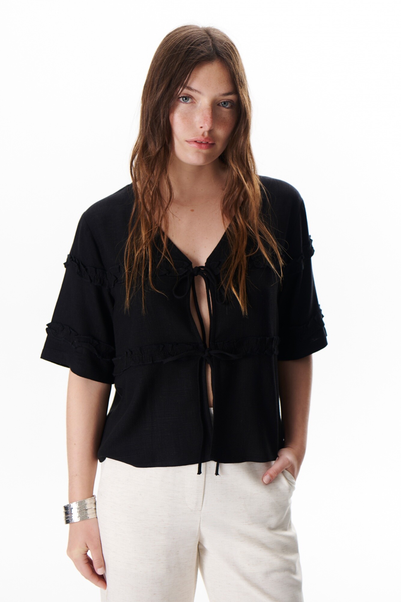 Si estas buscando un look delicado y romántico, la Chaqueta Atar es para vos! Suave y ligera, con lazos delanteros. Se destaca por sus volados fruncidos y mangas amplias. Disponible en tres colores para que puedas elegir la que más se adapte a tu estilo.