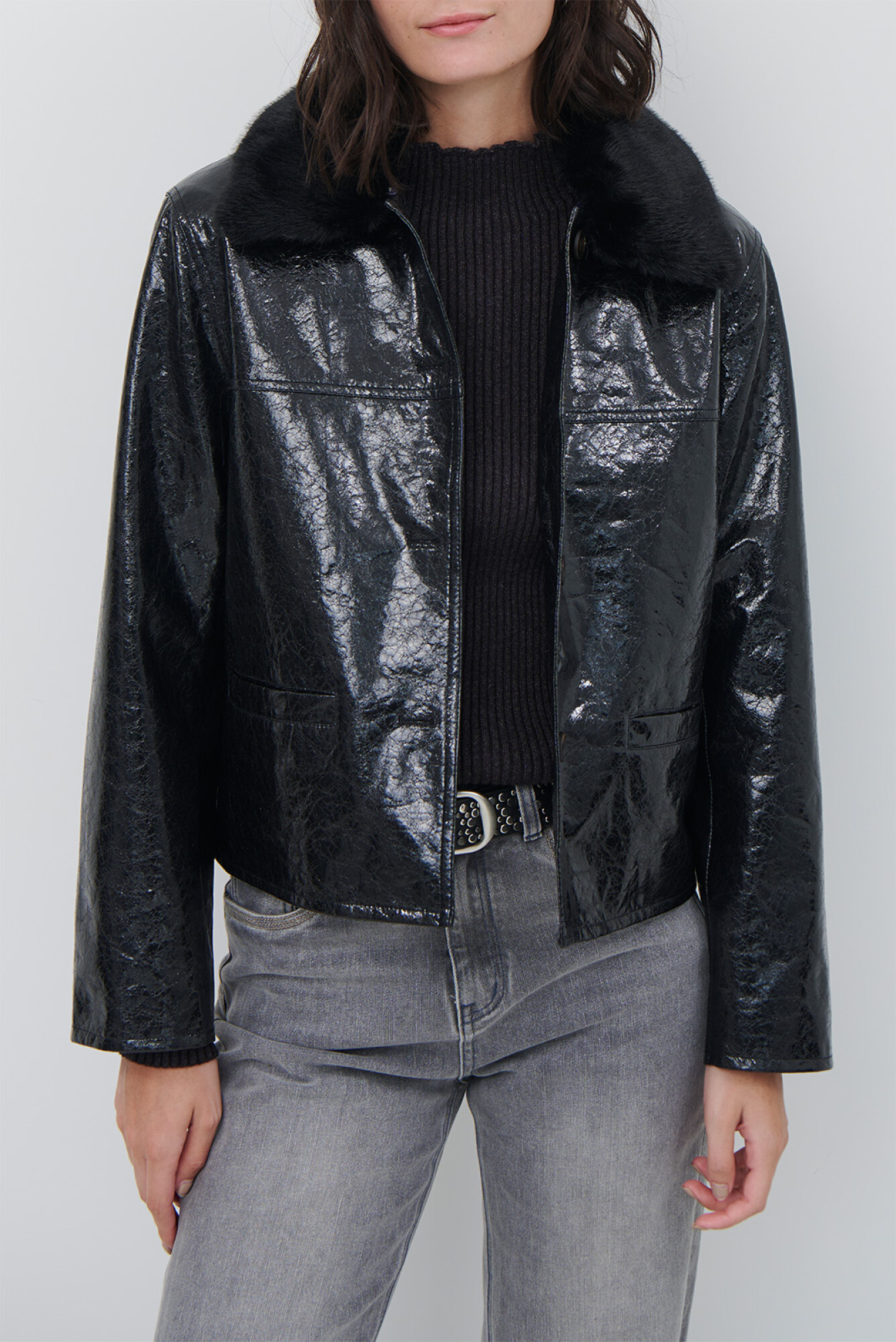 CHAQUETA GLOSSY - NEGRO