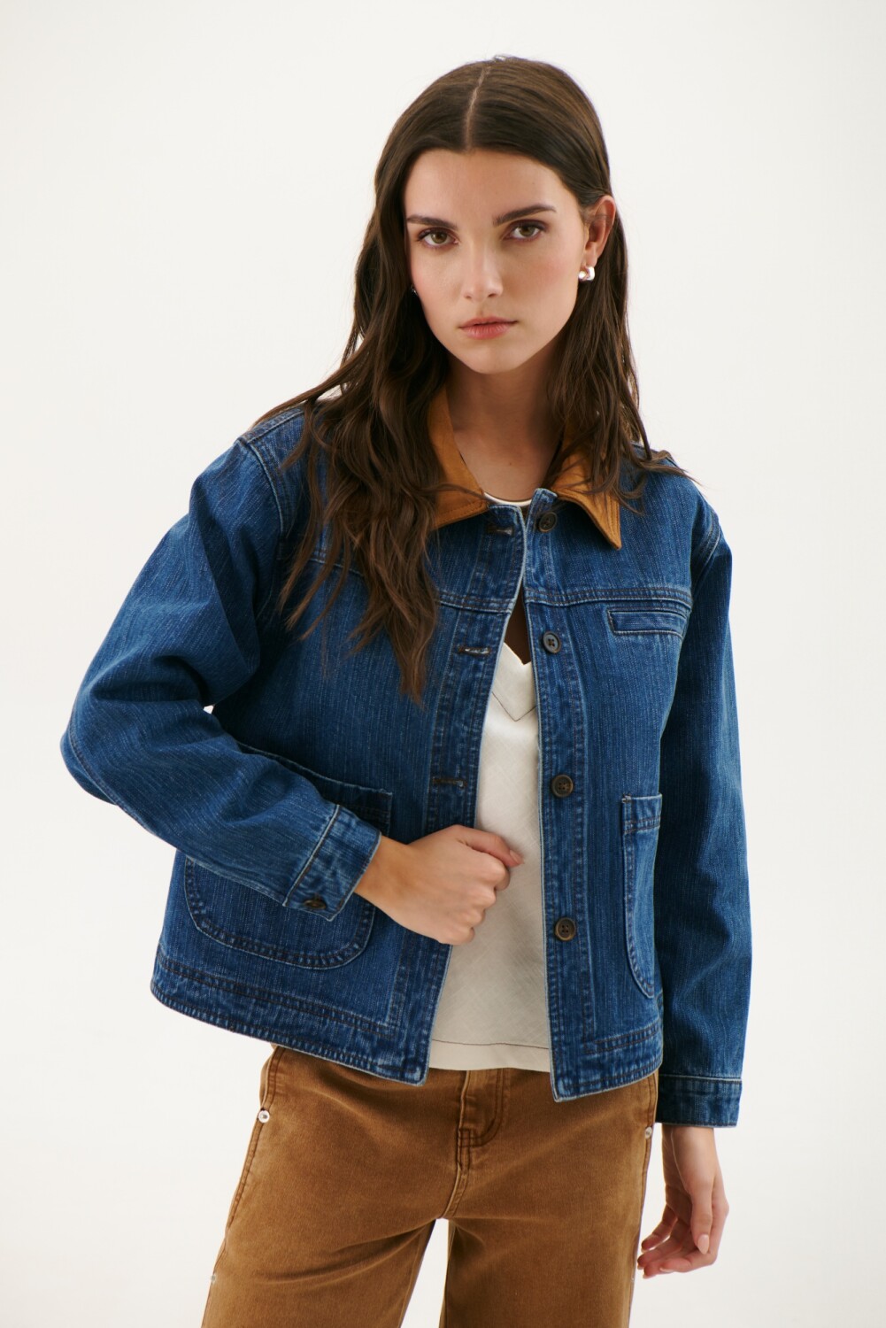 Si estás buscando un look canchero, la Chaqueta Jean Cuello es para ti. Esta chaqueta cuenta con bolsillos delanteros y se destaca por su cuello en simil gamuza. Es ideal para cualquier ocasión, ya sea salir a tomar algo con amigas o utilizarla en tu día a día.