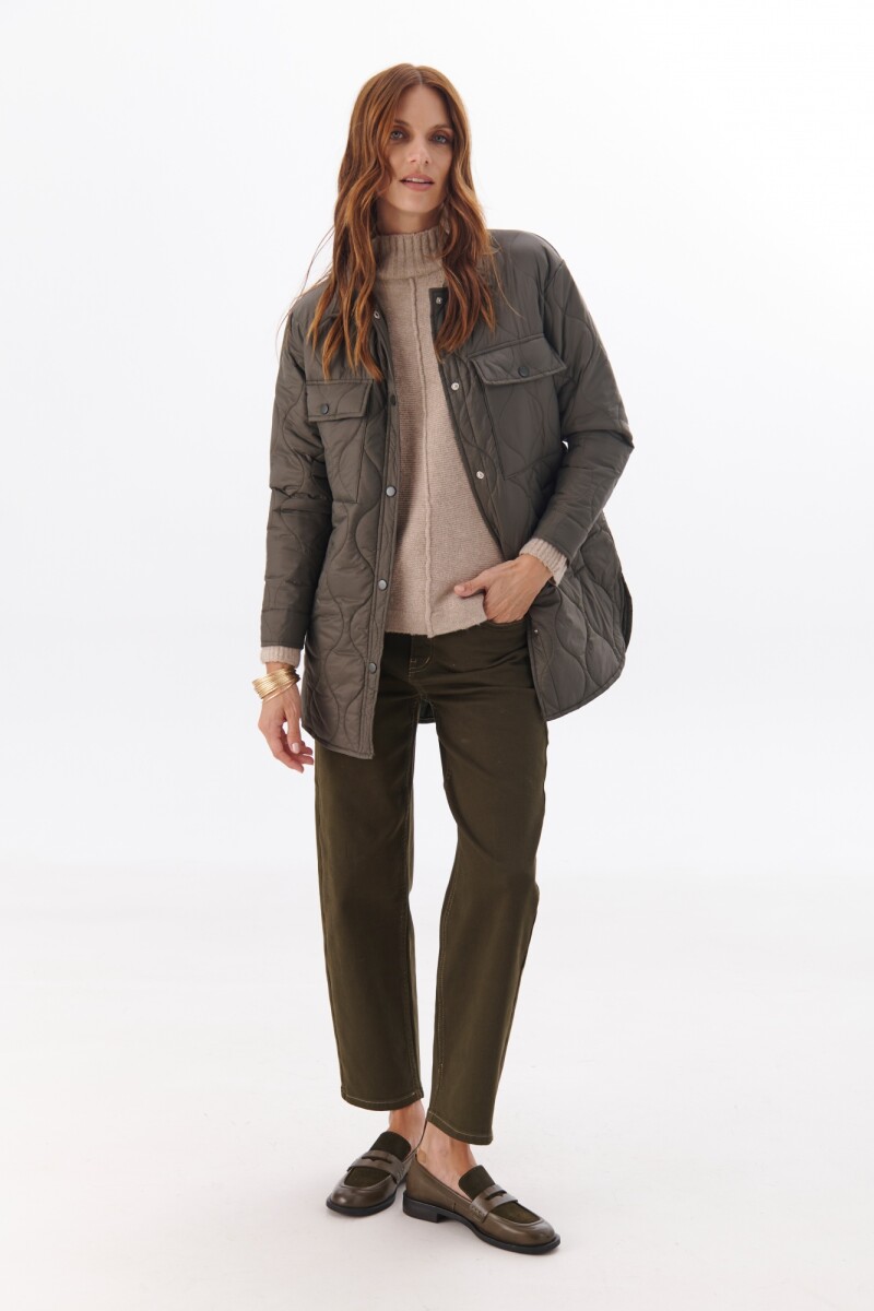 El chaquetón Matelasse se destaca por su diseño de capitoneado, cuello camisero y bolsillos delanteros. Es liviana ideal para usar con tus prendas favoritas