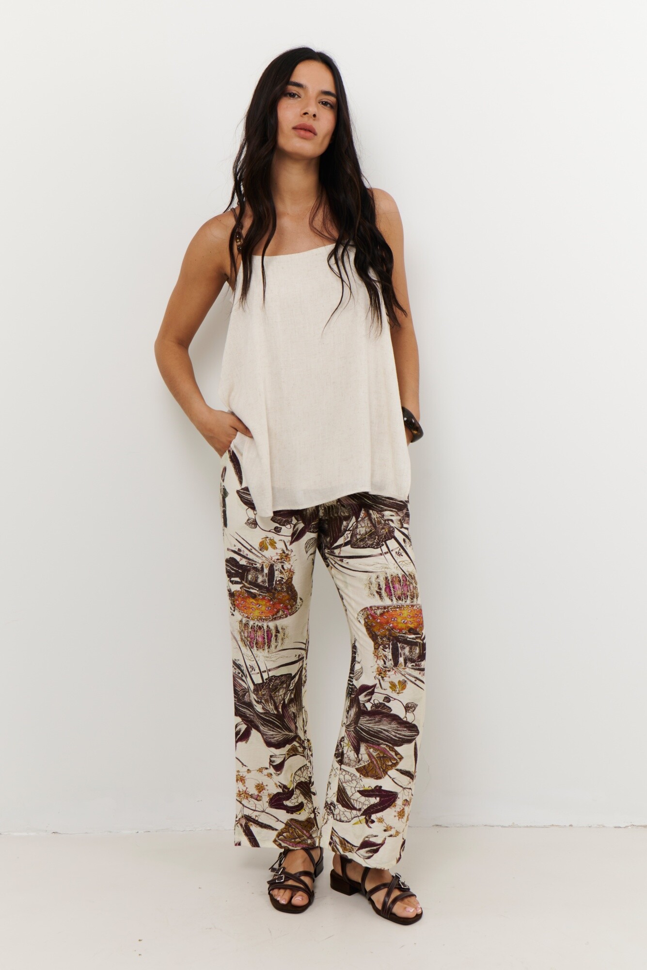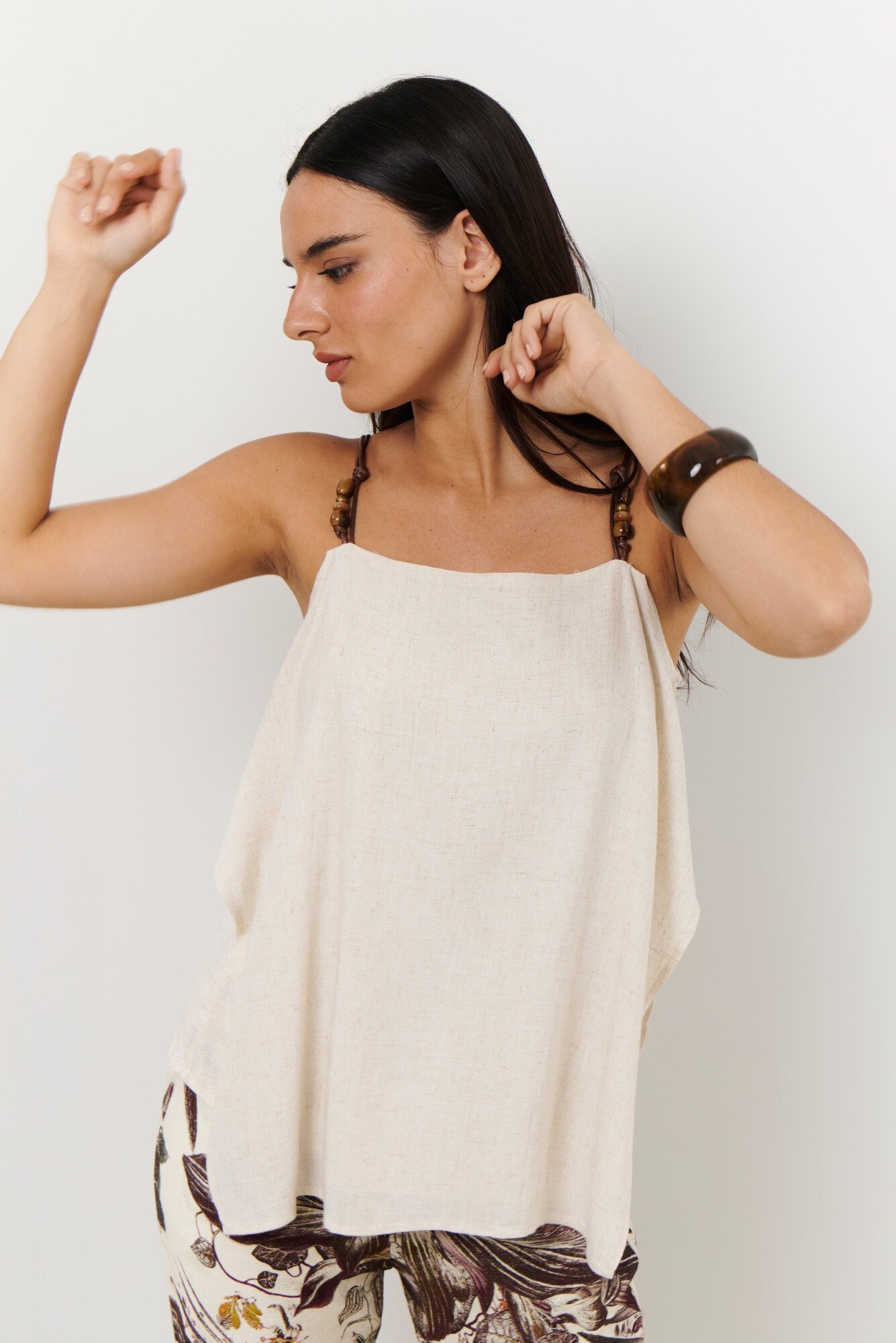 La Musculosa Bali fue diseñada para acompañarte en tu día a día con un toque de elegancia y comodidad. Se destaca por su diseño de telas en capas y los terminales de carey que lo convierten en una pieza atemporal.