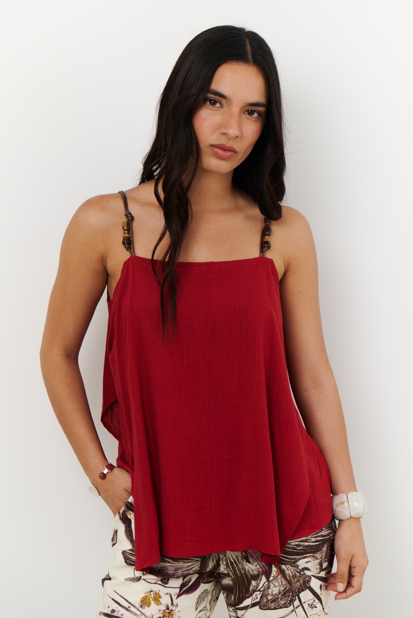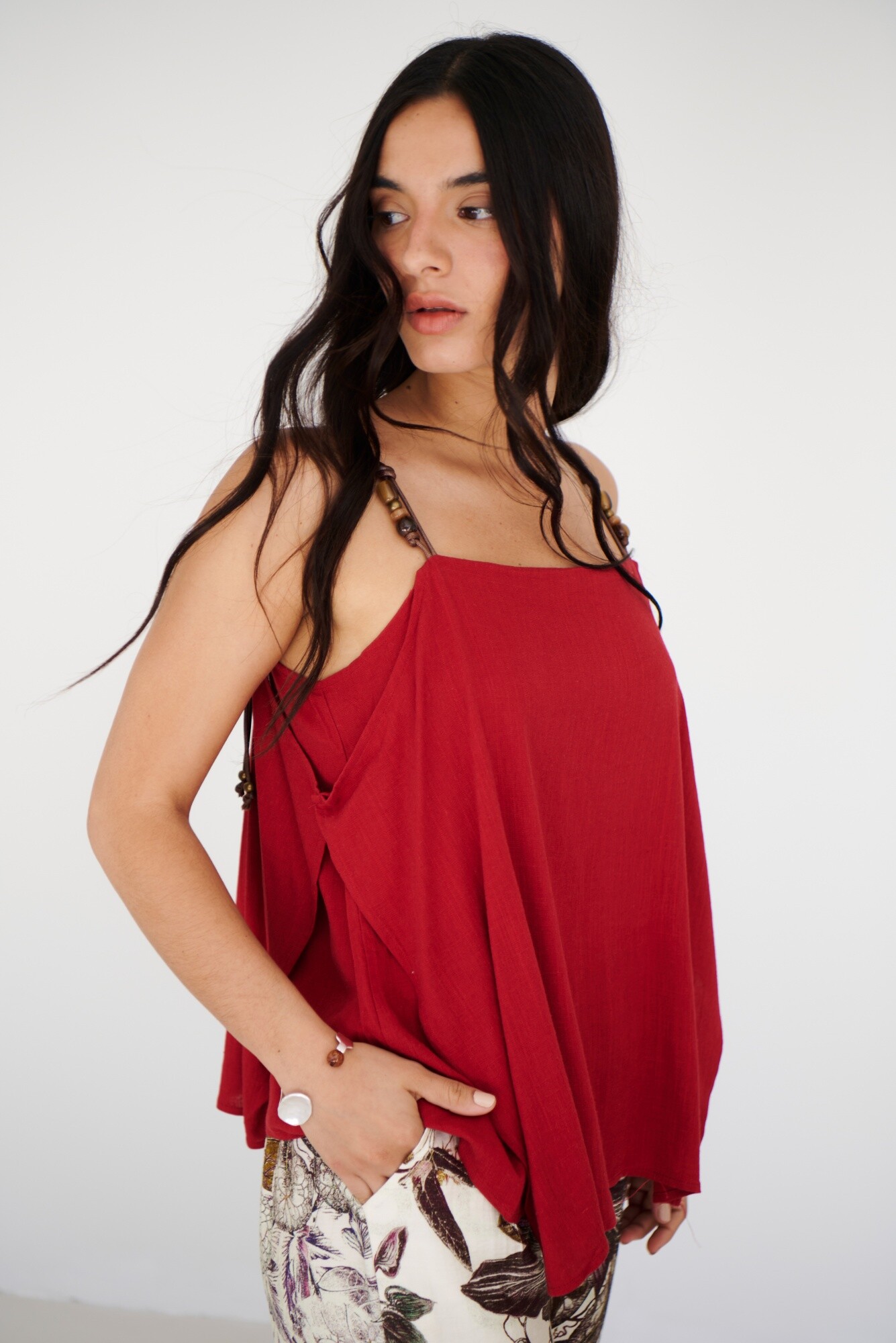 La Musculosa Bali fue diseñada para acompañarte en tu día a día con un toque de elegancia y comodidad. Se destaca por su diseño de telas en capas y los terminales de carey que lo convierten en una pieza atemporal.
