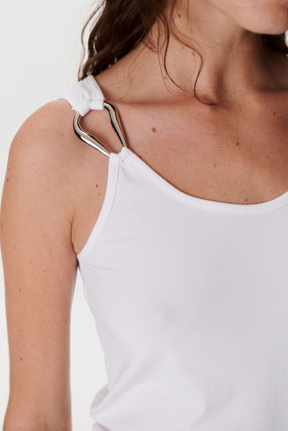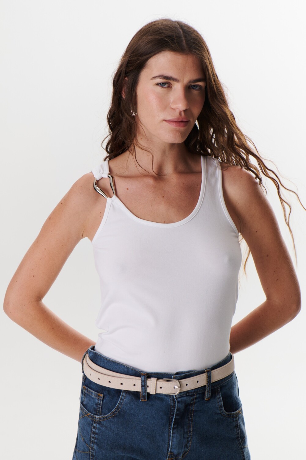 La Musculosa Metal se destaca por su aro metálico, es una prenda versátil y cómoda ideal para cualquier ocasión, ya sea salir a tomar algo con amigas o utilizarla en tu día a día.