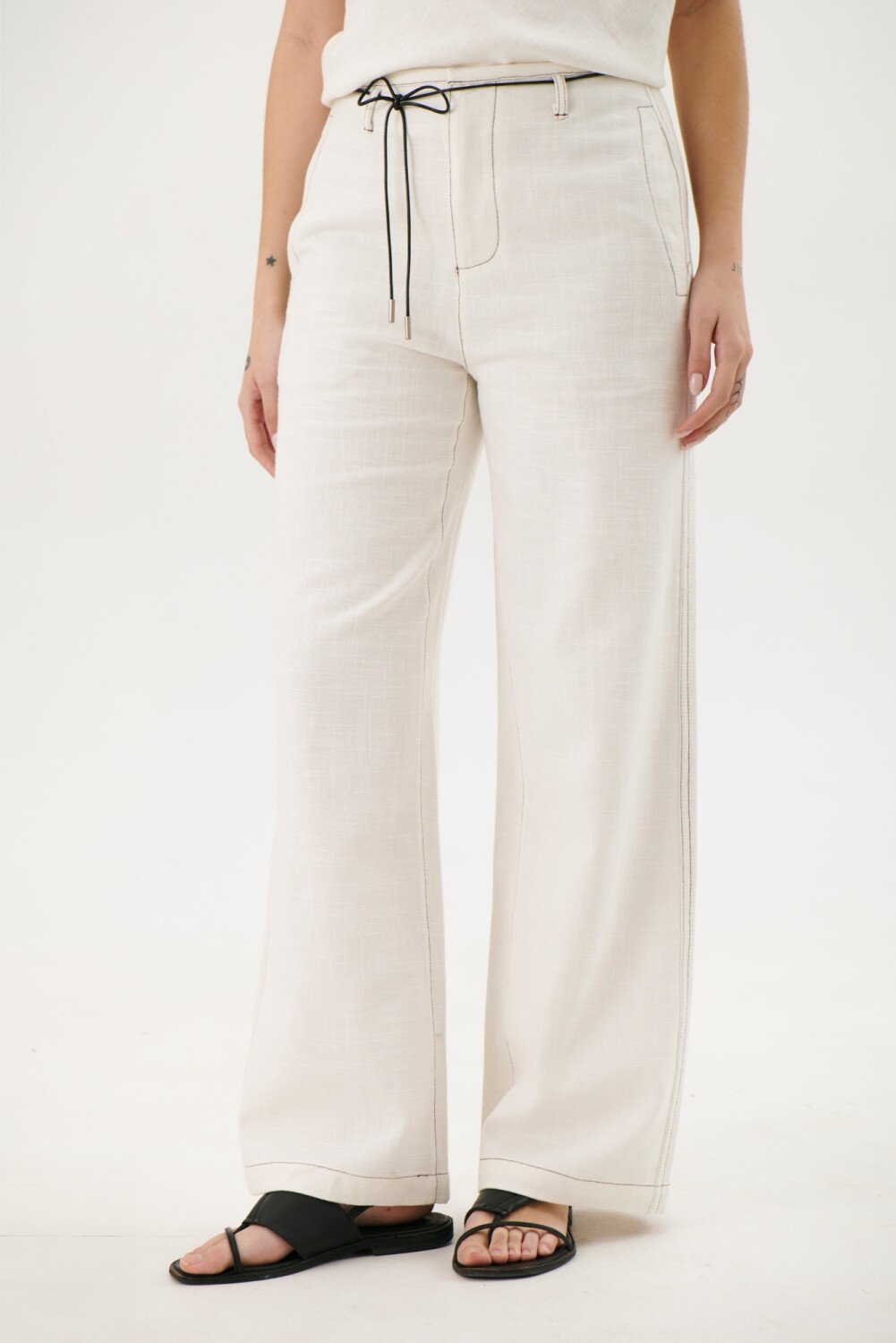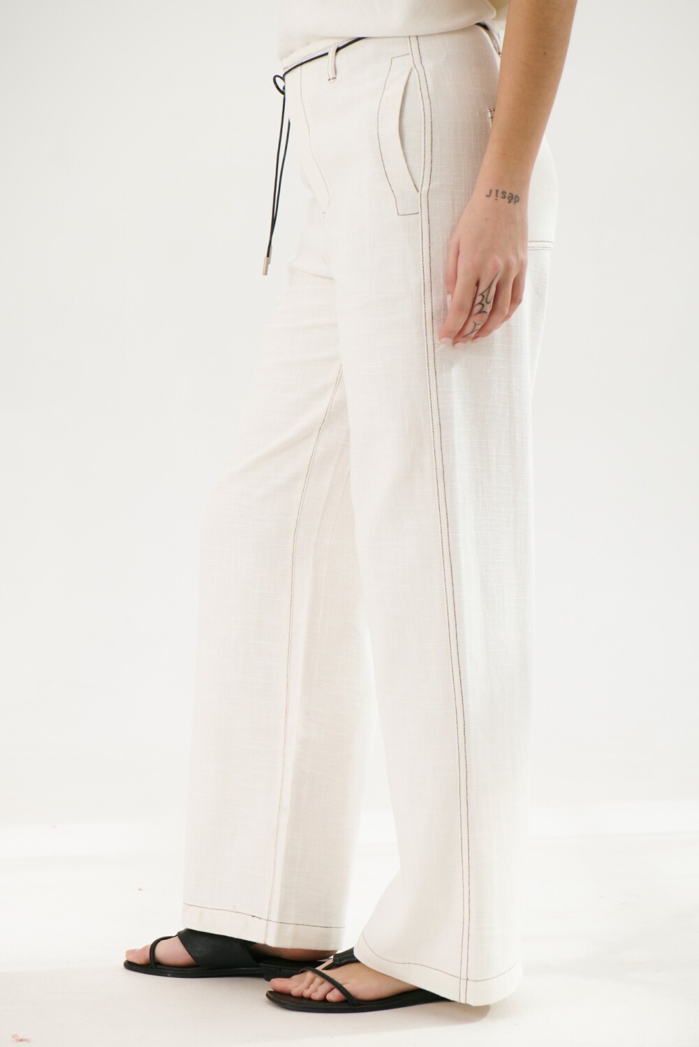 Si buscas estilo y comodidad el Pantalón Lino Art es para vos! Se destaca por la caída de su tela y pespuntes a contratono. Su corte amplio proporciona un ajuste cómodo y fluido, con cintura alta, cierre de cremallera y botón. Cuenta con bolsillos laterales súper cómodos.