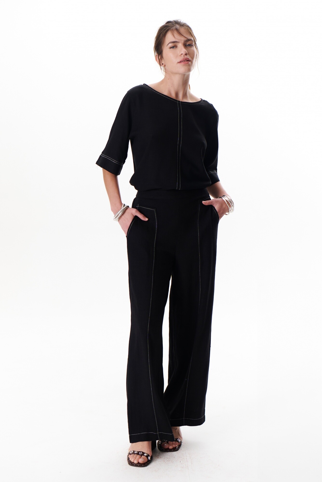 PANTALON LINO POCKET - NEGRO