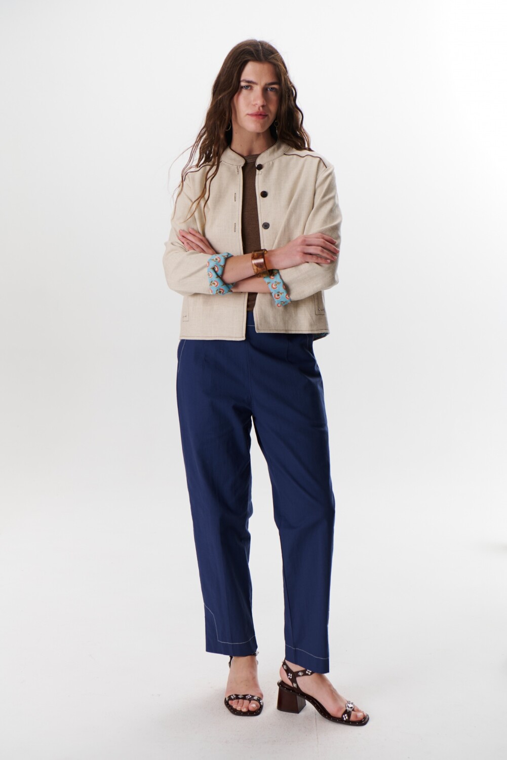 Confeccionado en una mezcla de lino con un toque de elasticidad, se adapta perfectamente a tu figura, brindando un ajuste cómodo sin sacrificar el estilo. Su corte contemporáneo y los detalles sutiles lo convierten en una prenda versátil que puedes combinar fácilmente con remeras o crear un conjunto espectacular con el Top Lino Strech o el Top Lino Strech Vivi.