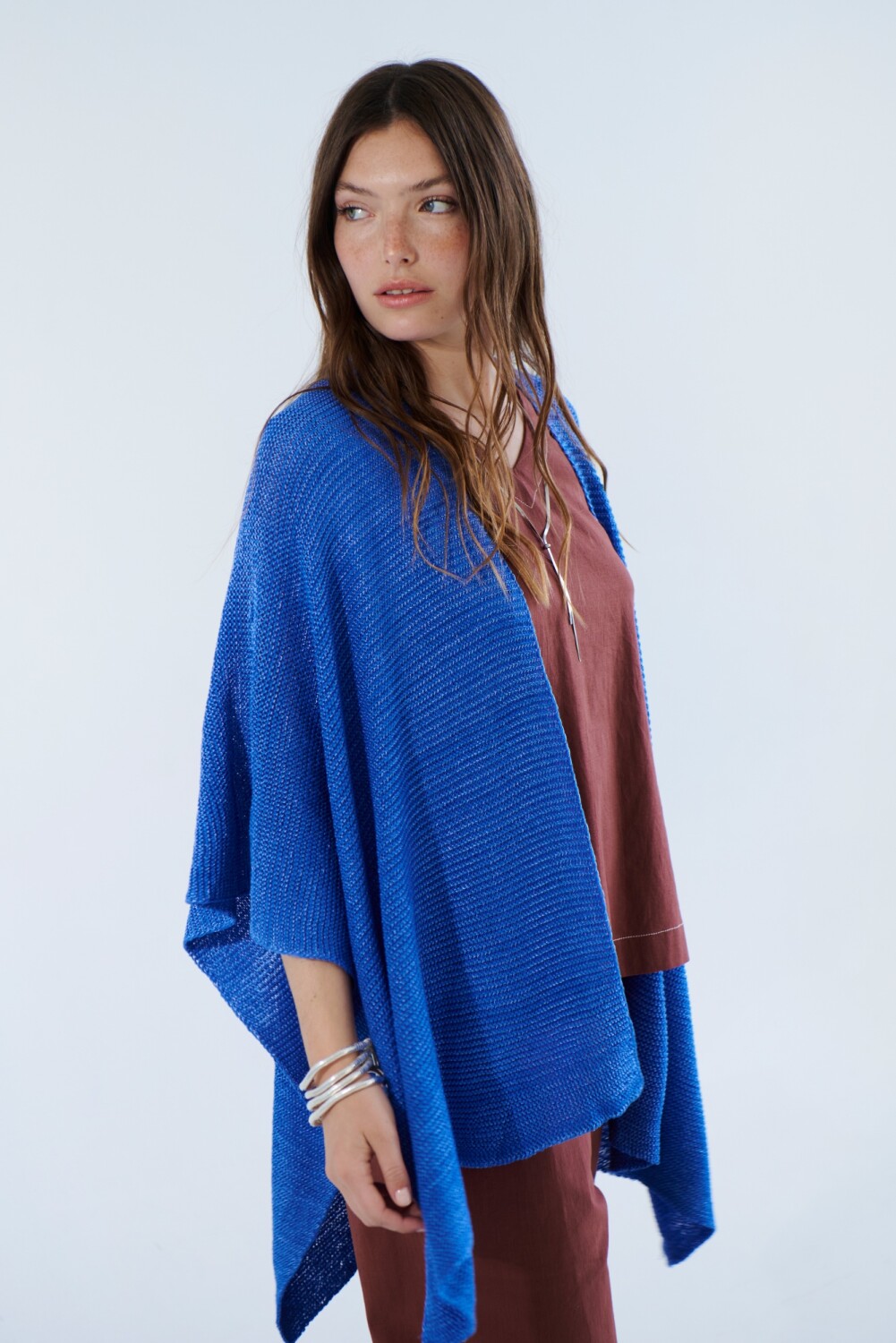 Dale un toque bohemio y elegante a tu estilo con nuestra Ruana Cotton. Confeccionado en un tejido ligero y suave, esta ruana es perfecta para los días de primavera y verano, aportando una capa adicional de calidez y estilo sin sacrificar la comodidad.