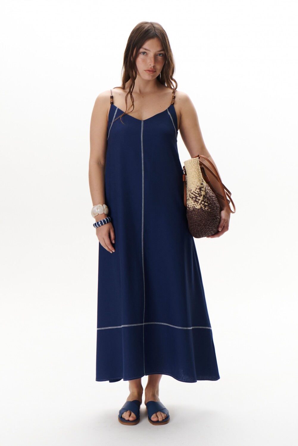 La Solera Bali fue diseñada para acompañarte en tu día a día con un toque de elegancia y comodidad. Su largo maxi, escote en V, bolsillos laterales, bordados de collareta y breteles finos con terminales de carey, lo convierten en una pieza única que lo tiene todo para hacerte sentir increíble.